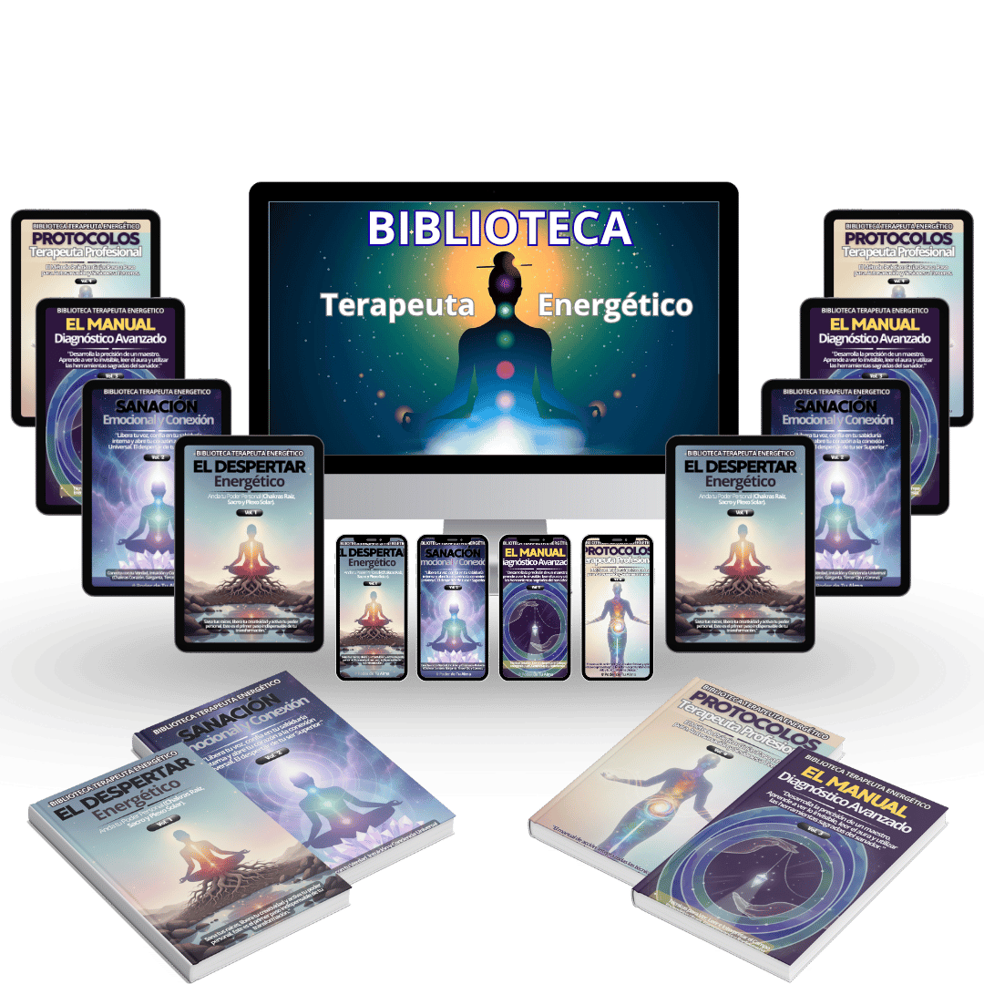 Para que no solo tengas la teoría de la "Biblioteca", sino las herramientas prácticas para aplicarla. Recibirás 6 manuales y diarios completos que cubren cada aspecto de tu nueva vida como sanador: